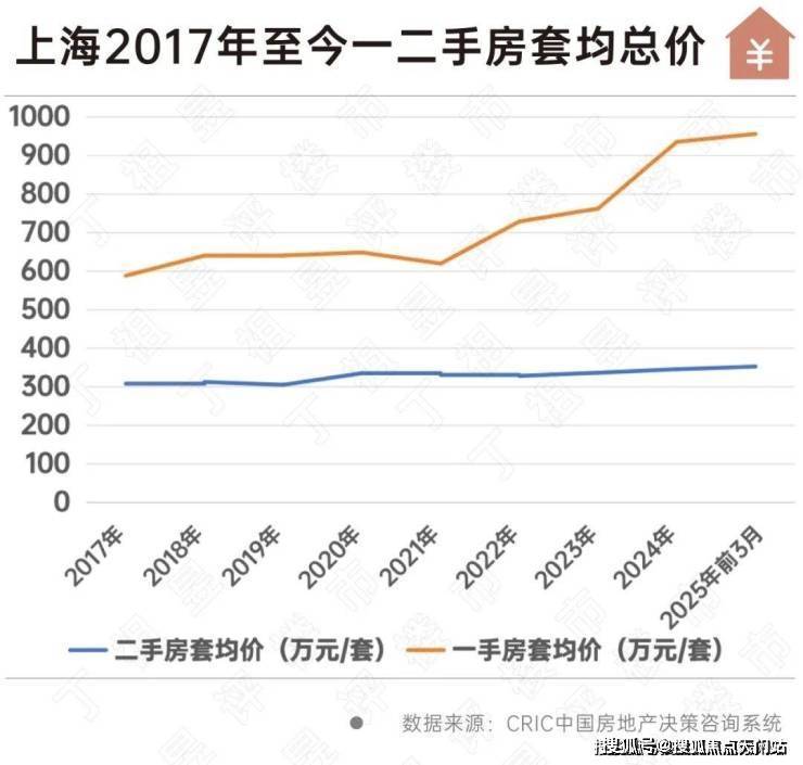 从成交价格来看,2017年至今上海二手房套均成交总价都在300多万,其中2025年前3月价格最高,套均总价352.56万元。