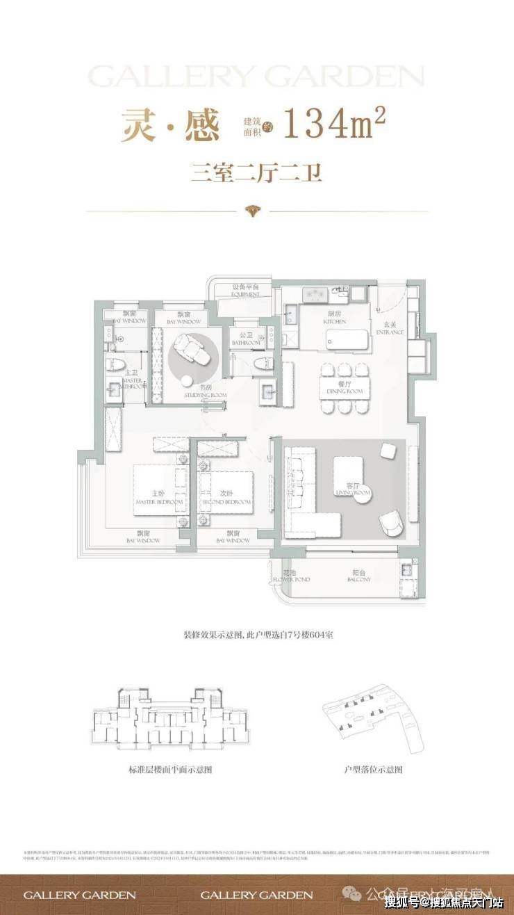 建面约134㎡3房2厅2卫, 主力总价约1500-1700万,户型设计在上一个户型的基础上将各功能间尺度升级的同时,也做了一些更人性化的迭新。