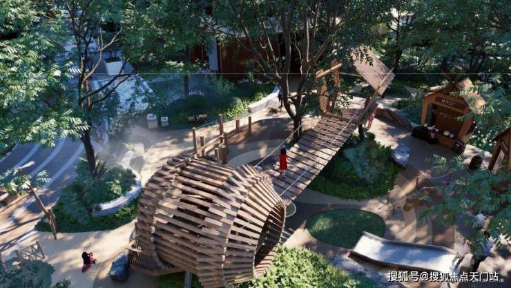 儿童乐园也被完美结合进了自然探险的主题之中,从树屋到自然客厅,有了全域驱蚊雾森系统,孩子可以在安全可控的环境中,接触原生态的自然艺术。