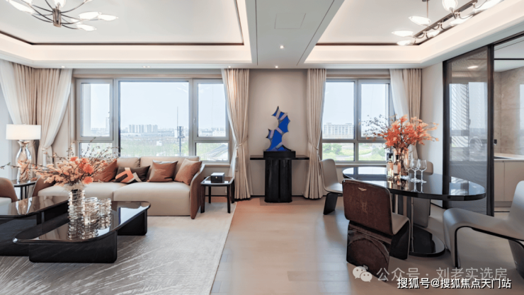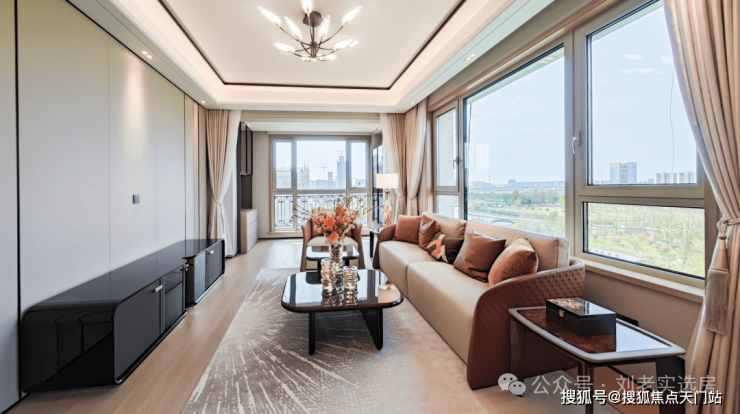 特别建面约159㎡客厅,270°环幕观公园,满窗都是绿色。