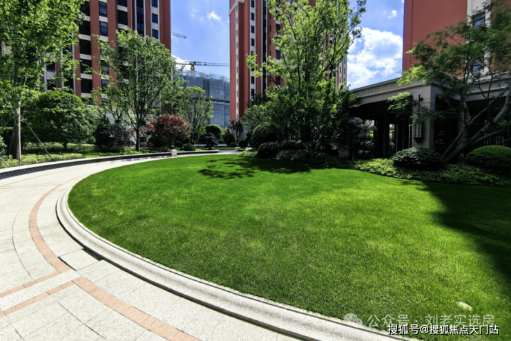 目之所及都是层次丰富的绿植和茂盛粗壮的大树,根本不像准现房状态,要知道很多开发商为了节约成本,常用矮小绿植做填充,但公园道看起来像是已经交付数年。