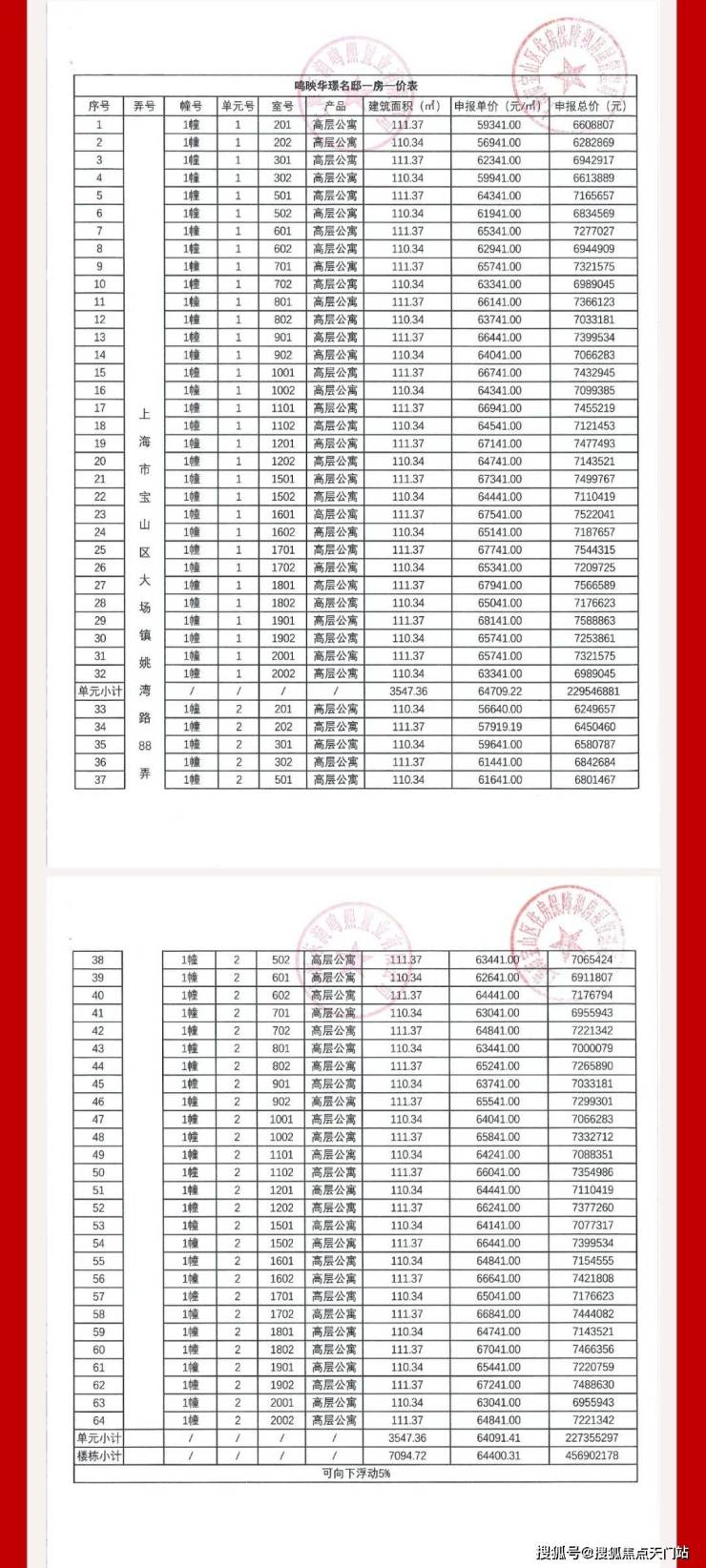 一房一价表如下: