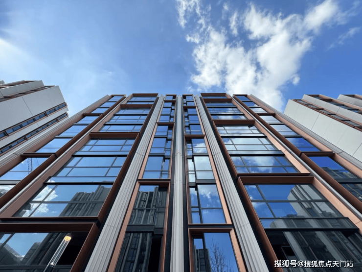 天安1号前期的住宅外立面选用铝板+石材,搭配大面积玻璃,颜值出众!