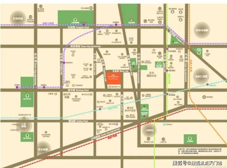 交通配套方面:项目地处长宁、徐汇、闵行三区交汇的金虹桥板块的核心区位,拥有多维立体的交通,延安高架、中环线、外环线环伺。