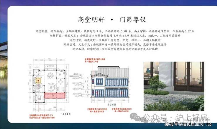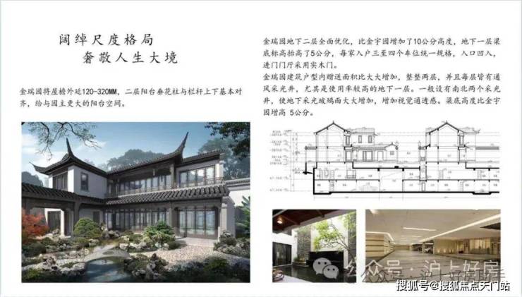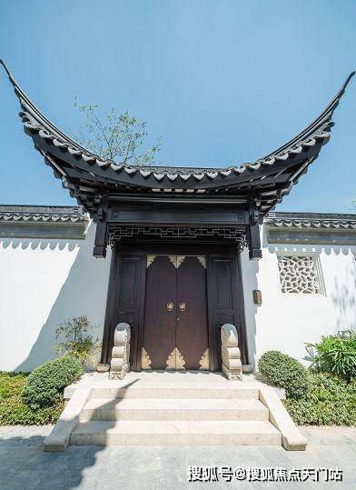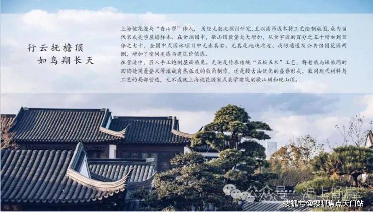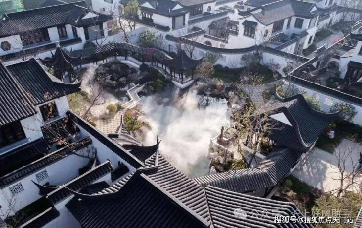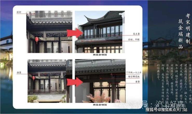 同时,建筑采用宋代宫殿, 建筑出檐宽广,檐下增加斗拱、镂空雕花、甘蔗脊、阑额等元素,约2/3宅园设置入户连廊,为全国之最,雅贵造极。