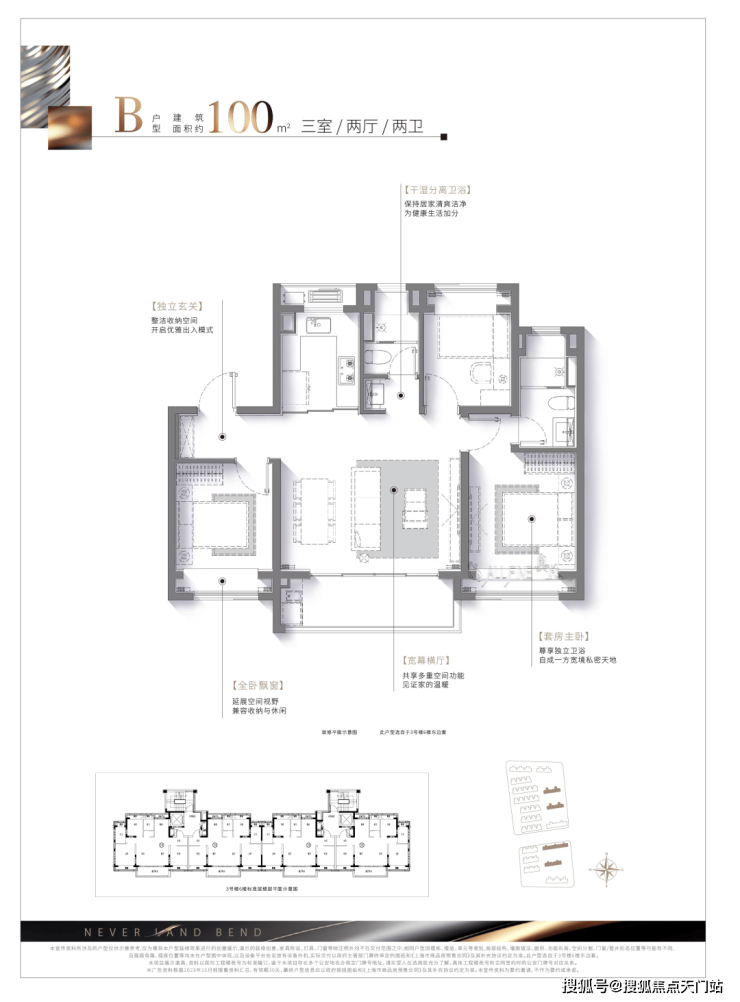 此外, 干湿分离卫浴设计+南向套房主卧+全卧飘窗设计,生活舒适度拉满。