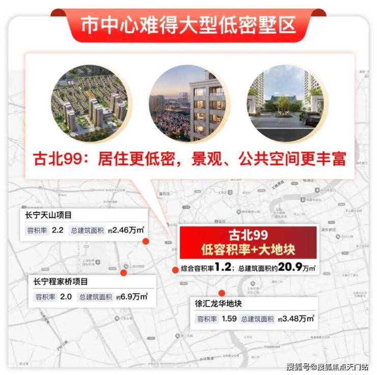 放眼周边待售项目,普遍高容积率+小地块(公区、景观不会有太多打造余地),市中心也难有古北99这样的低容积率和体量了。