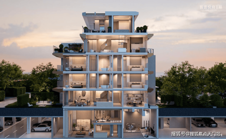 更为重要的是,翡雲悦府·悦墅Ⅱ期通过“三重立体庭院体系”,实现了墅居庭院平权:下叠拥享私家庭院,可打造花园秘境、亲子乐园或社交庭院;上叠配置空中悬浮庭院及顶层星空露台庭院,实现有天有地的墅居理想,告别传统叠墅“有墅无院”的遗憾。