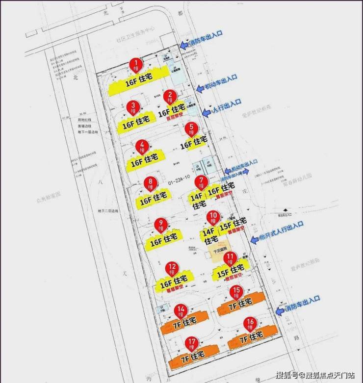根据项目规划设计方案,项目拟建11幢14-16F高层住宅、4幢7F多层住宅以及若干社区配套用房,共计规划约752套可售住宅;小区人车分流,规划有下沉式庭院、地下会所,2#、7#、10#、11#、12# 设置有架空层,打造泛会所空间。