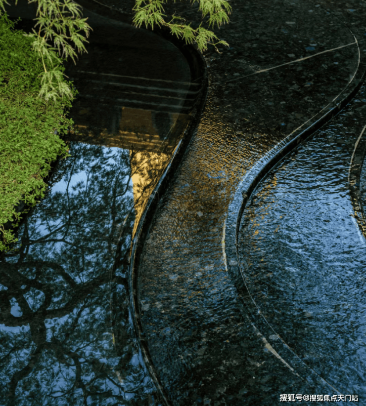 围绕约300㎡的镜面水展开,利用高差,呈现一处藏于下沉花园的东方隐奢秘境