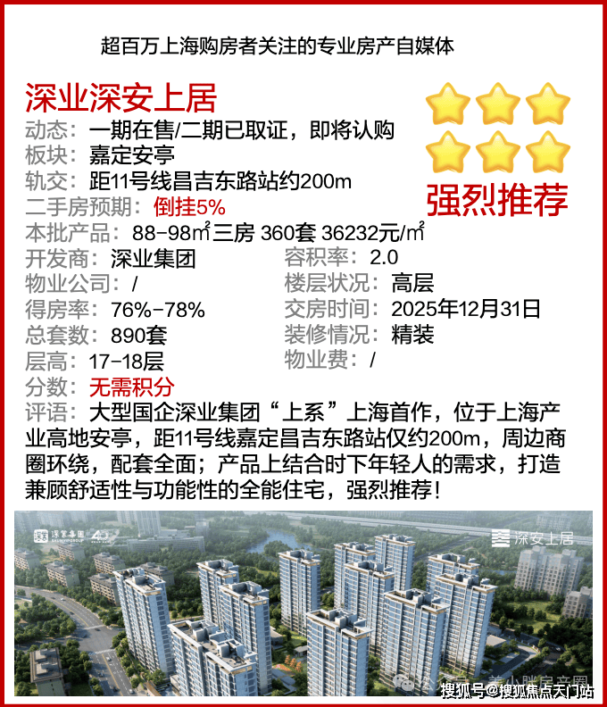 距11号线直线距离约200米的深业·深安上居,有望成为嘉定下一个总价300万级轨交红盘!