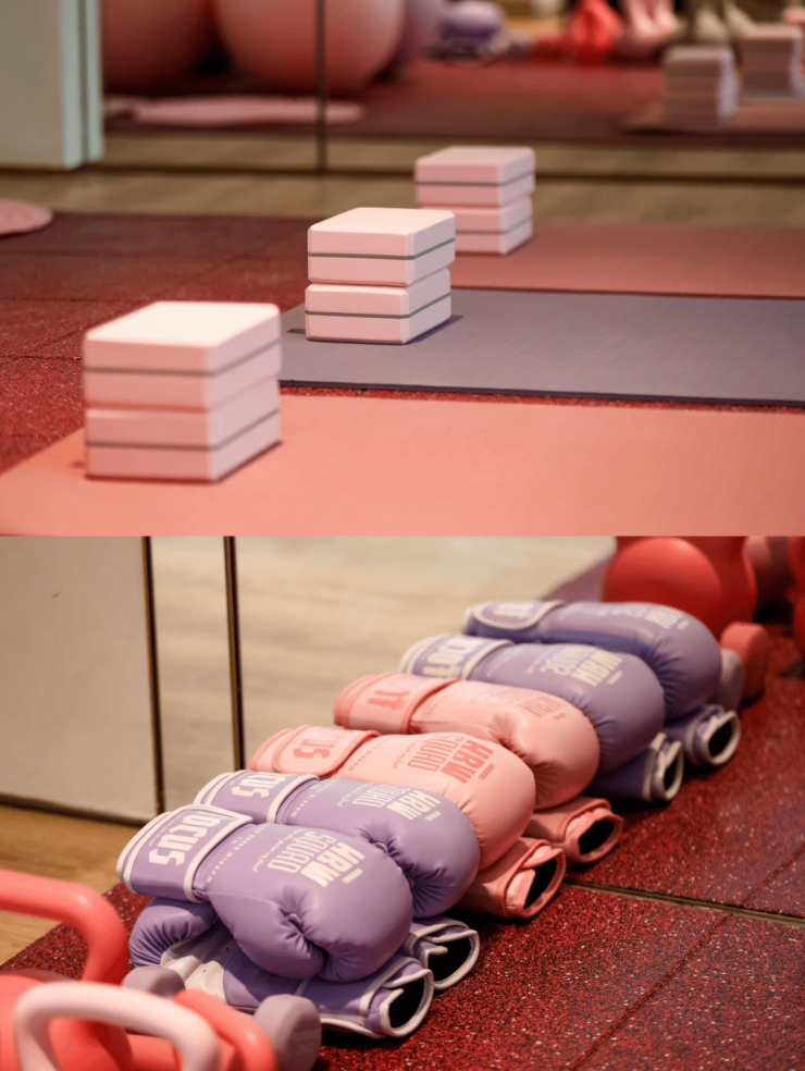 健身房 的一大亮点是延续了项目对“她享主义”的设计,除了传统健身器材外,还打造了女性训练区,不仅设计风格更柔和,专属女性的拉伸区也更加复合女性健身习惯。