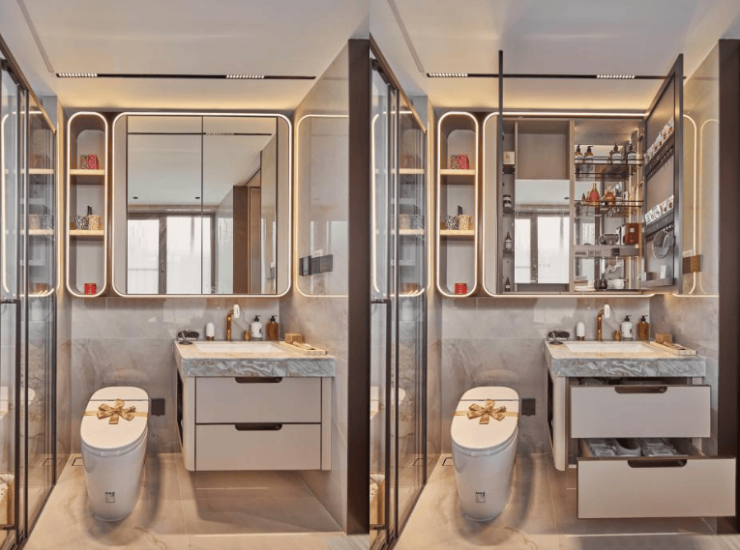 保利天奕特别关注到女性的生活需求,专门在卫生间配备了 科勒美颜龙头、美妆镜柜、美妆冰箱 ,采用“ 顶+面双补光照明 ”,能把“女本位”需求做到如此细致,目前没有几个项目能做到!