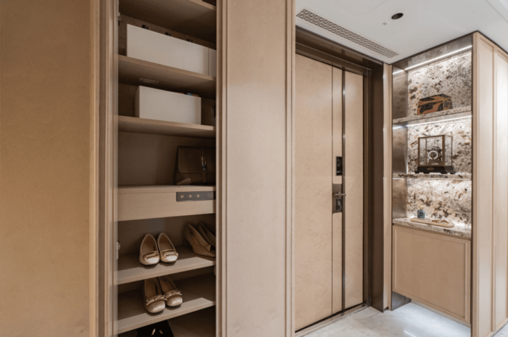 项目137户型进门做了一整排收纳柜,堪称收纳界的“精细管家”,分类科学到让每一件物品都能精准归位。