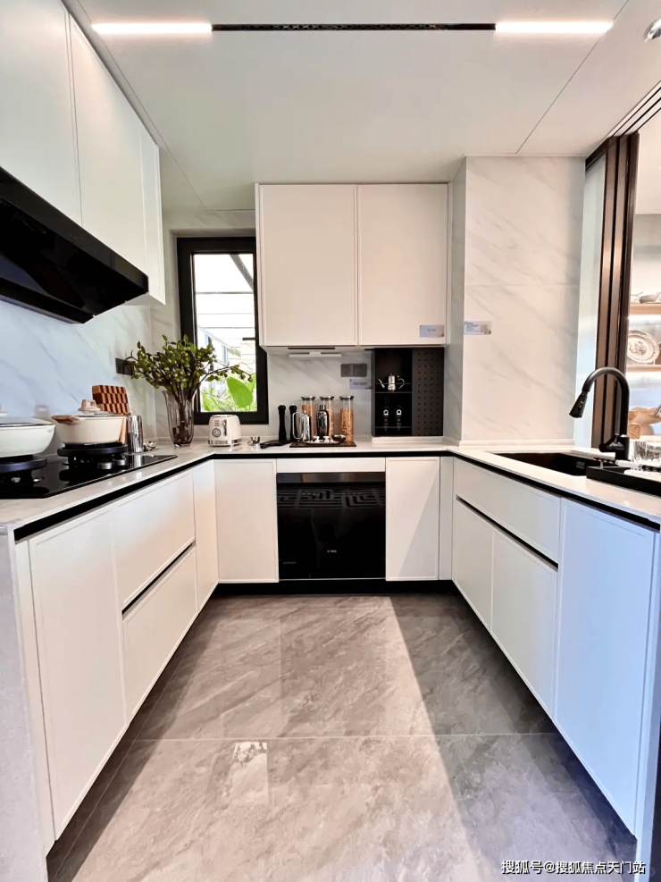 而蓝金沙岩板,金色脉络与深蓝色基调交相辉映,平添了一份奢华与神秘的美感,带来一种遨游宇宙的感觉,大面积的镜湖春晓奶茶色岩板,亦以其淡雅内敛的光泽,带来非同一般的尊贵感。