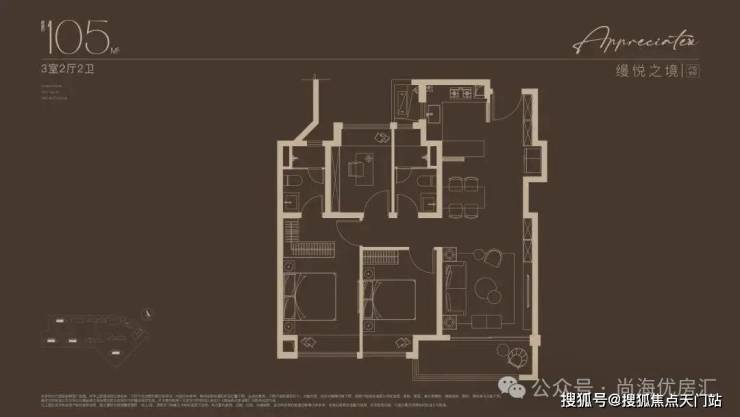 建面约105㎡3房户型,总价400万级即可上车!堪称同等总价段的改善天花板!三开间朝南,约9.6米大尺度南向面宽,最大程度揽光入室;客餐厅一体化 ,连接厨房和南向阳台,动线流畅,也是更大的欢乐聚场;创新研发S墙设计,预留冰箱专属位置,释放厨房使用空间 ;主卧套房设计,奢享独立卫浴和衣帽间,尽享尊崇。
