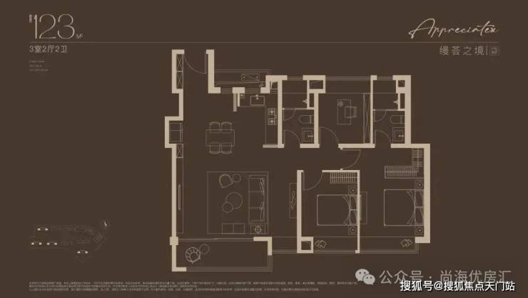 建面约123㎡3房户型,户型方正,三口之家的改善进阶之选!巧妙预留X空间,既可成为客厅空间的延伸,也可独立成室,实现更多功能想象。约12.5米南向面宽,搭配270°宽景阳台,窗外美景一览无余。