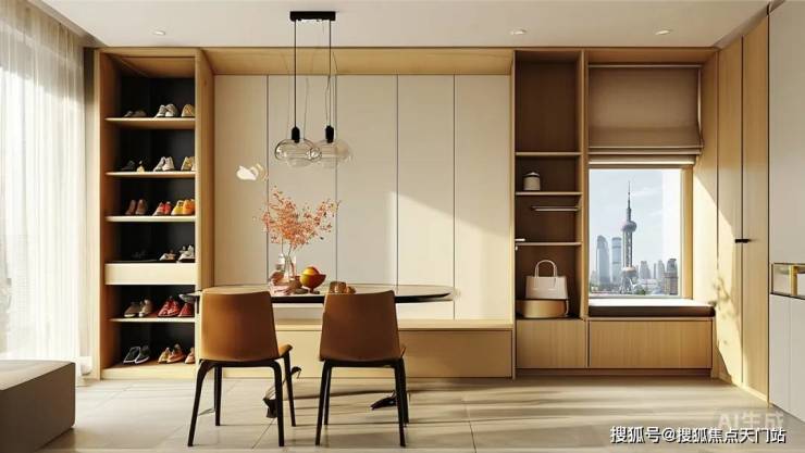 特别值得一提的是 收纳系统:从玄关的旋转鞋架到飘窗下的隐藏储物柜,设计师像解构俄罗斯方块般利用每寸空间,解决上海家庭“东西多房子小”的痛点。部分户型还配置了约6.8米宽景阳台,将虹桥天际线变成家中“动态壁画”。
