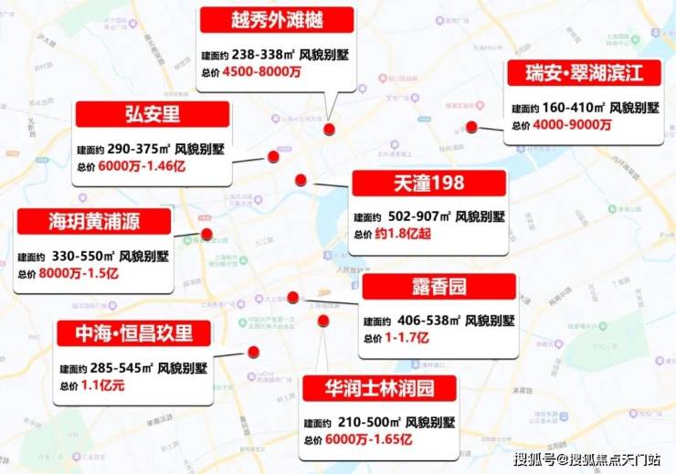 臻稀地段遇上鼎流产品,风貌别墅占据了上海顶豪塔尖位置!黄浦区风貌别墅单价25-30万/㎡,北外滩和东外滩滨江风貌别墅21-24万/㎡!总价则以大几千万起,甚至上亿!