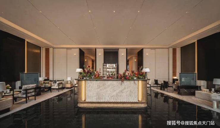 客厅背景墙的“烟雨江南”天然大理石,不同于传统平面背景墙,通过弧度及立体的造型处理,并镶嵌不锈钢材质,对于金茂而言,比奢石昂贵的,是让奢石真正与空间气场融为一体。