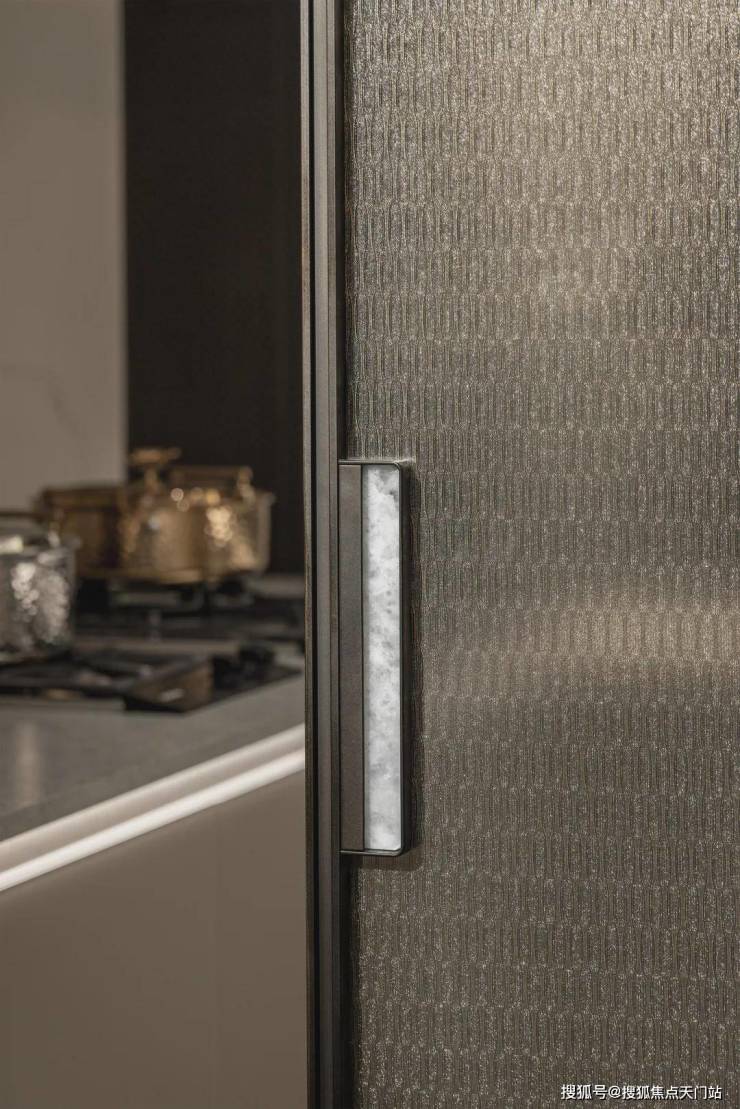 厨房与餐厅打造半开放式格局,隐形推拉门既可以隔绝烟火,平时收入墙内让空间一体、开阔大气。