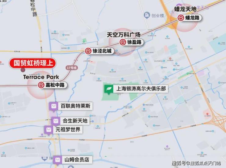 项目周边已成为上海人周末出行的打卡圣地,蟠龙天地、天空万科广场、百联奥特莱斯、合生新天地、元祖梦世界、山姆会员店等商业、休闲综合体一路连缀。