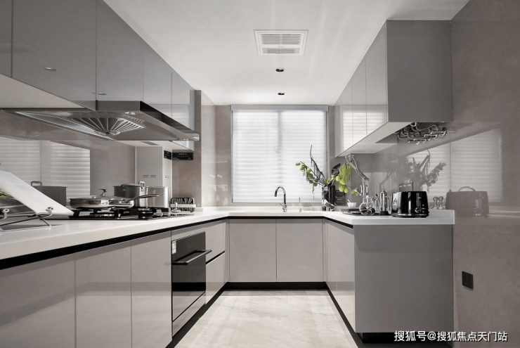 入户玄关设计,设置了一个不小的隐蔽储物间,大大增加了室内的储藏空间,可以将平时不用的闲置物归纳于此。客餐厅阳台一体设计,客厅南连宽景阳台,餐厅南连飘窗,南北通透采光,将生活的奢度打开。