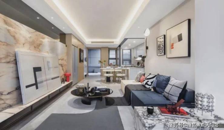 客厅、卧室墙面均为墙布交付,电视背景墙为岩板交付,这两项几乎在总价约350万起的项目里是看不到的;
