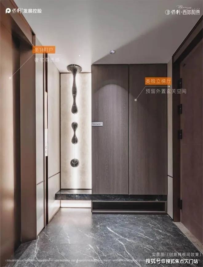 该户型 类1梯1户设计,拥有类独立梯厅,给足了业主归家仪式感和尊崇感,同时拥有一个尺度阔绰的入户门厅作为自己家的延伸!