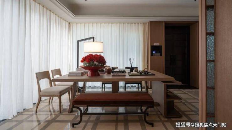 一进|隐园之境:整个翡雲悦府拥有相当宽奢的入户门庭,昂贵的用料、精致的线条与柔和灯光,奢华而有腔调。