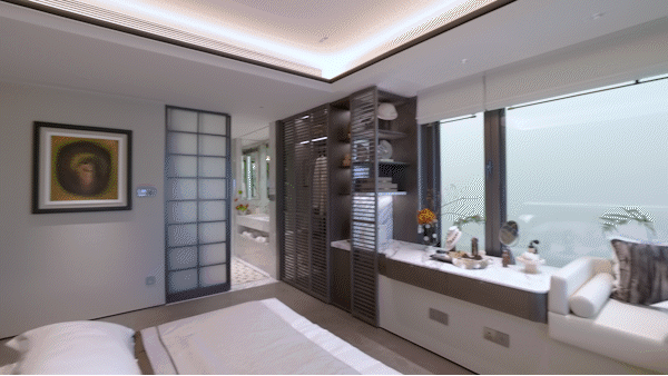女王化妆区域以三面镜打造无死角美妆空间,则将精致二字渗透到每个毫米。