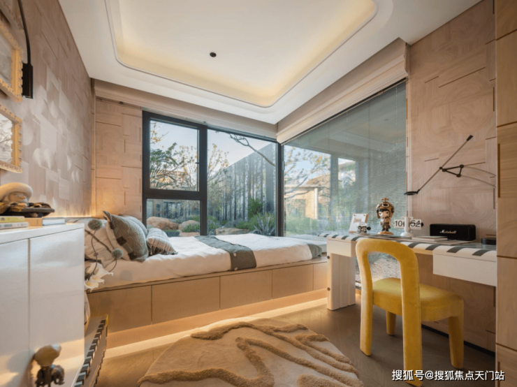 并且,卧室的尺度感极佳。即使是最小的北房间也能放下一张床+一个书桌,加上约270°的采光面,这个户型可以满足一个家庭各个阶段的需求,一步到位的好产品。
