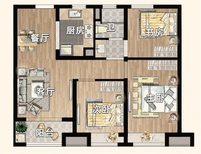 7.户型同比周边早期楼盘深度优化小户型均三房,三开间朝南