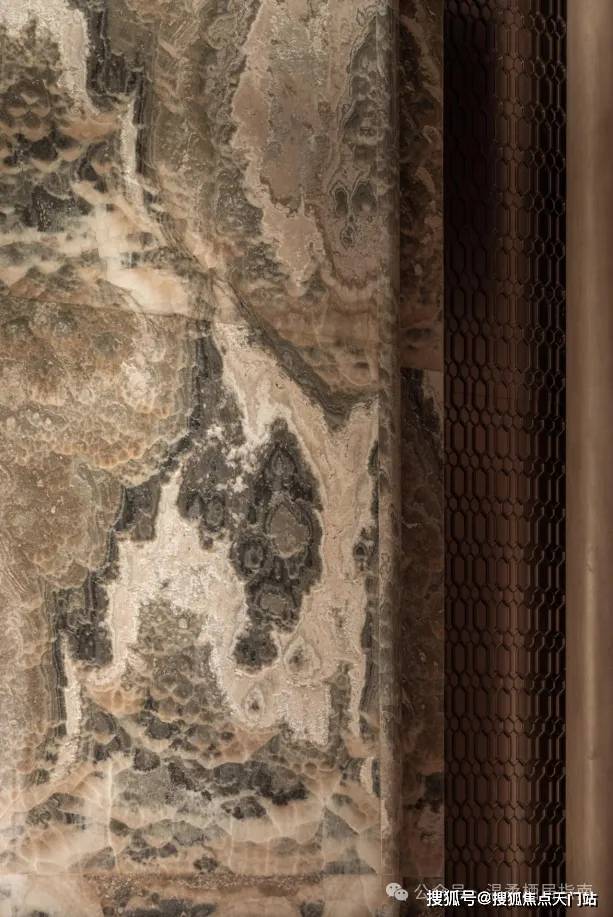 整个公区的引入沉香米黄、透光云石、安哥拉黑、福鼎黑、橙皮红、宝格丽紫 等近二十种全球奢石,宛如一座流动的奢石博物馆。