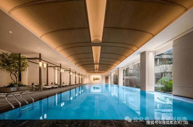 最让我心动的是这个无边泳池! 招商序以 “室内外自然无界”的设计手法,将无边泳池与庭院美景在视觉上连成一体,当阳光映照跃动的蔚蓝,业主畅游的同时还能包揽庭园诗意;深色木架构撑起白色帏幔,池边躺椅的设计也极具豪华酒店的优雅与尊贵,穹顶则延续着海派穹顶的经典设计元素,以细腻的木纹铝板打造。以往只在奢华度假酒店的体验在家楼下的会所也能拥有!