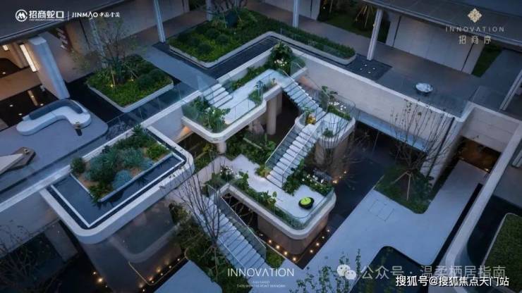 不夸张的说,看过无数个 “下沉式庭园”,招商序仍然拿出了很有创意的设计想法,创新式打造 4层悬浮式下沉园林 ,整个立体庭园,汲取了海派大师邬达克封笔之作「曾经的远东第一豪宅 -吴宅」精髓,力求“宅、园、水、院”立体交融,借天地之景,纳四时之变,将人间春色凝于一园。