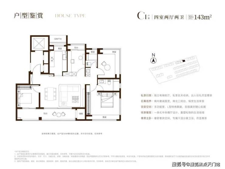建面约143㎡的四房户型,堪称项目兑现其“城市进阶改善”承诺的集大成者。