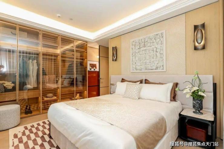主卧套房采用双面采光设计,面宽约4.8米,营造出酒店套房般的尺度与静谧感。