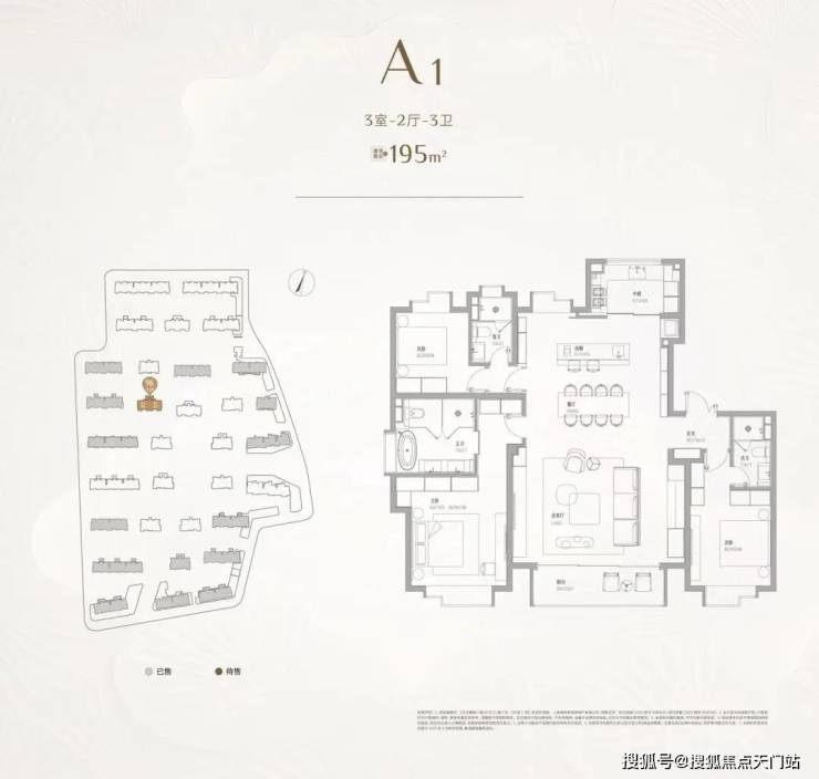 建面约195㎡大三房 | 藏品级尺度奢享 : 五年全市供应占比仅约0.04%,以接近200㎡的尺度只做三房,重新定义舒适度上限,是板块内绝无仅有的“资产型藏品”。