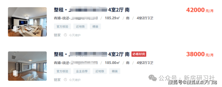 产业与配套的大爆发,首先冲击的肯定是响应时间较短的租房市场,据链家网显示,目前徐泾的4房大户型最高能租到近4万/月,1年的租金就逼近50万!