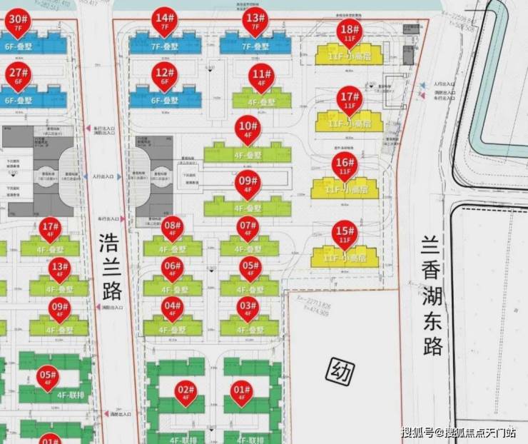 03-04地块:东至兰香湖东路,南至兰香湖北路,西至浩兰路,北至东川路, 土地用途普通商品房,容积率1.01;由4幢11F高层住宅、14幢4-7F多层住宅以及若干社区配套用房组成,共计规划约342套可售住宅;