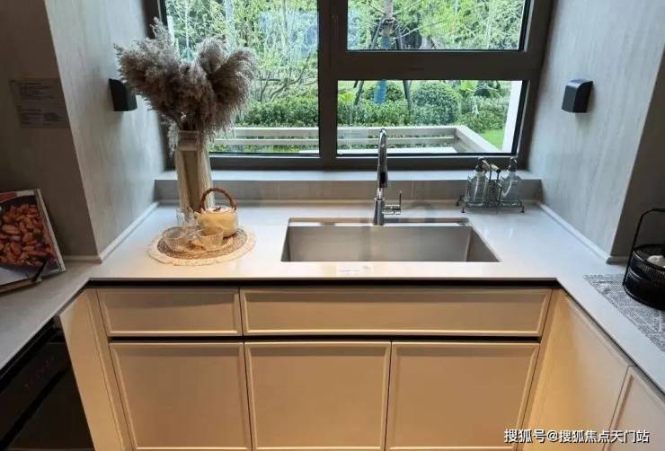入户设置800库空间,它和传统玄关柜的区别在于:从“平面收纳”升级为“立体仓库”,储物功能更强大!约5米面宽横厅,多出来一个灵动空间,可根据个人需求定制为开放式书房、茶室等;岩板+金属饰面电视背景墙同样为交付标准;LDK一体化,餐厅区域可轻松放下6人位餐桌,并预留餐边柜位置;U型厨房,配置方太四件套(油烟机、灶具、洗碗机、蒸烤一体机)、科勒水槽及龙头等,基本所见即所得;同时厨房也附赠飘窗,将飘窗台面与橱柜一体化设计,做为了水槽区域,极大的提高了厨房空间的实用面积!边套户型主卧为270°转角飘窗,并预留两个衣柜空间;北卧为封闭阳台,实际交付时阳台会改造到位,地暖通铺,地板墙纸通铺,吊顶做好,可参考样间效果。 综合来看,该户型还是非常不错的,满足改善需求的同时,各空间储物空间充足,完美解决了这一类客群的收纳痛点,作为项目主力户型,关注度很高!