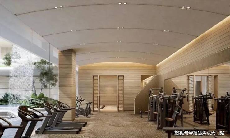 约1200㎡会所,以 私宴厅、瑜伽室、棋牌室、壁球室和健身房空间为主,功能丰富,匹配当代精英的生活与精神需求。立体下沉会所由 艺术旋转楼梯进入,整块 白木纹石材切割+宝格丽粉镶边设计的旋转楼梯,营造社区高雅氛围,步步生花。 区域首创国标壁球馆、飞瀑园景健身房、嵌入式景观书吧等,整体统一化仿树榴木纹贴面,还原内外统一的高级度假酒店质感。