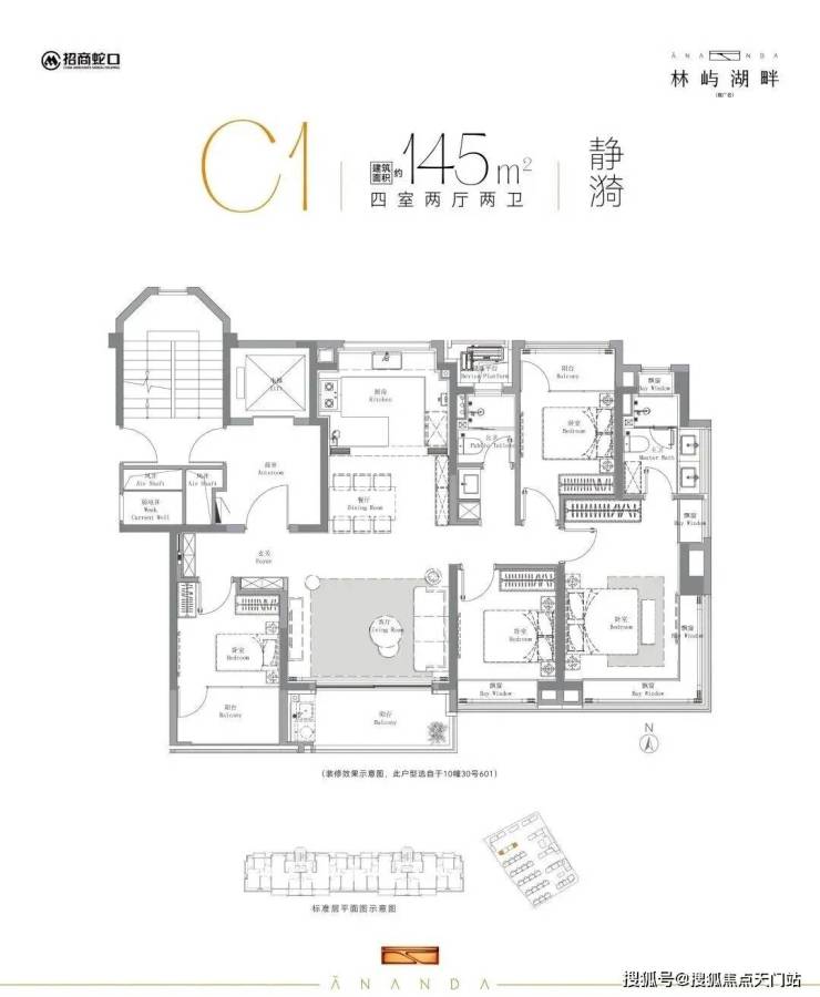 该户型分布在6号楼、9号楼、11号楼以及13号楼,其中9号楼位置最佳,南向楼间距约46米,下沉式庭院景观一览无余,下楼即达会所空间! 建面约145㎡4房2厅2卫,约98套,两梯两户,独立电梯厅,层高约3.15米,其中边套附赠电梯厅面积约6.5㎡左右,中间户附赠面积约4.5㎡左右,同样也是边套户型电梯厅的可利用率更高!