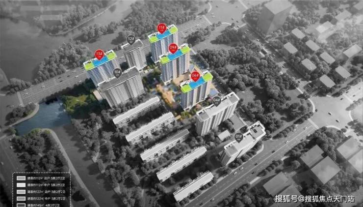 社区内5/8高层楼栋均有架空空间覆盖,共计约1700㎡, 最高建筑层高约7.2米的架空空间以 休闲下沉卡座、水吧台、休闲会客区打造,联动室外水池营造出酒店式度假空间,实现建筑与自然的无界融合。项目将推出建面约112㎡、122㎡、145㎡高层3-4房以及建面约160-165㎡叠墅,共计624套,其中112户型为一梯两户,122户型两梯两户。 建面约112㎡3房2厅2卫,约166套,