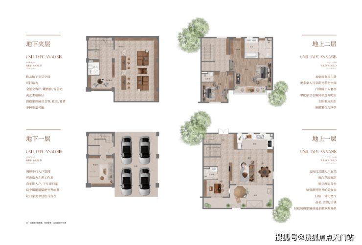 地下创意空间,地面精致花园、星空露台、多功能阁楼与夹层景观。共同营造“地下藏趣,夹层会客、地面莳花、露台观星、阁楼读书”的多本生活场景。