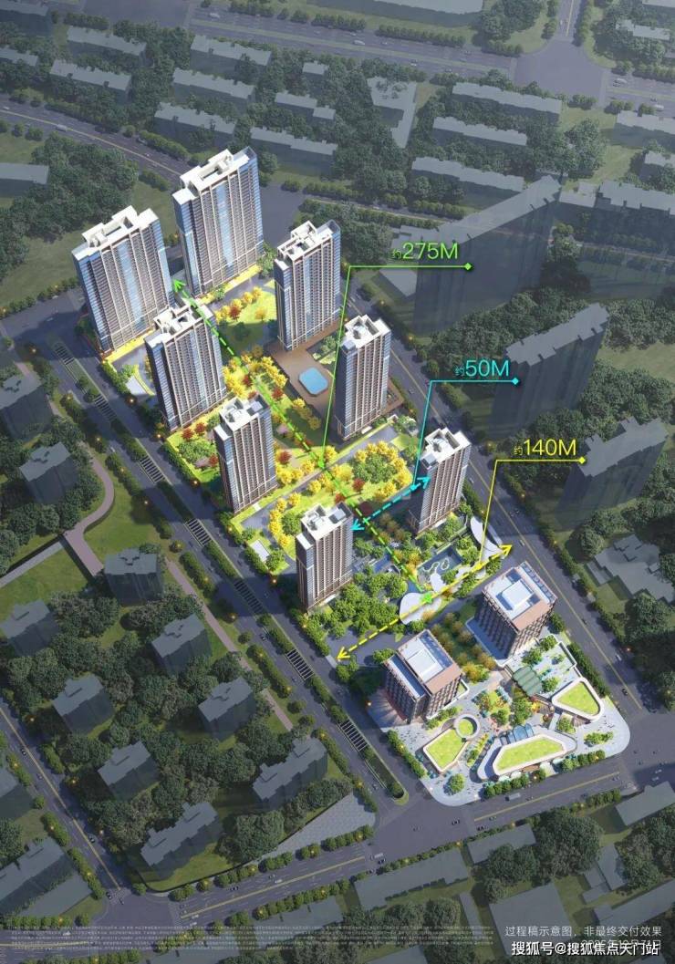 3、【纵览中轴全貌】小区最长的景观视野,能纵览约275m中轴景观,整体视野无任何遮挡,在中轴之巅,可以俯瞰整个翠谷。