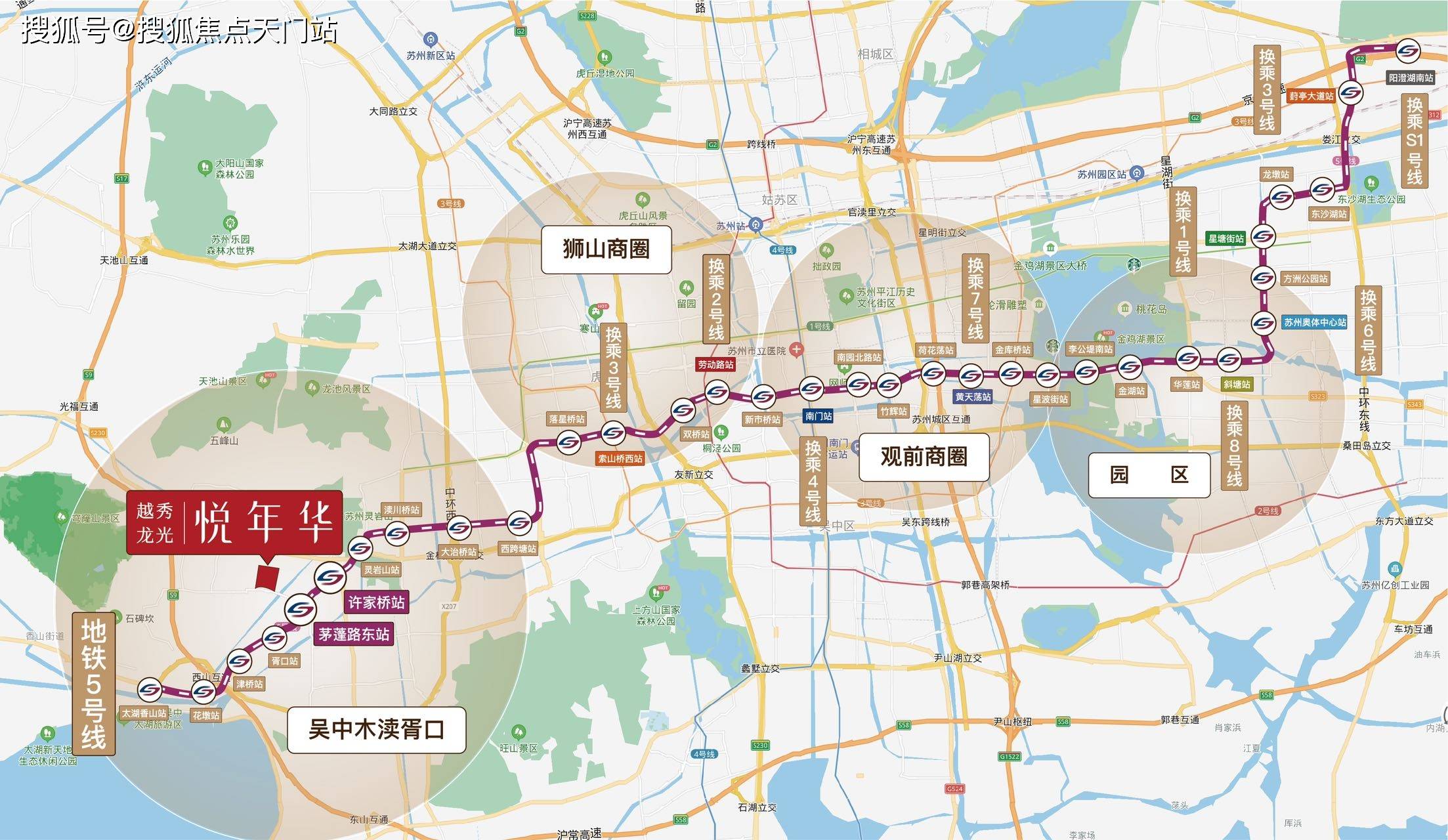 一脉主轴5号线,串联四大城区,途径木渎商圈、狮山商圈、观前商圈、园区湖东商圈,拉近版块边界,重塑城市格局。