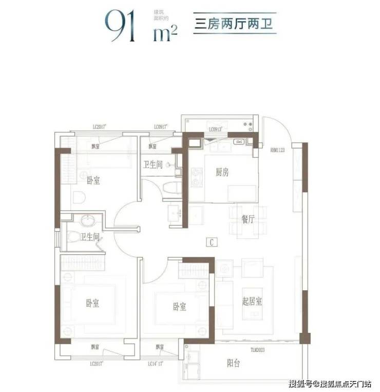 建面约91㎡-121㎡ 3房2厅2卫;这几个户型都是3房的设计,满足想一步到位的购房者。3开间朝南+客餐厅连通阳台+全卧室飘窗,以及套房式主卧设计+2卫,即使是三代同堂,也能让生活从容。