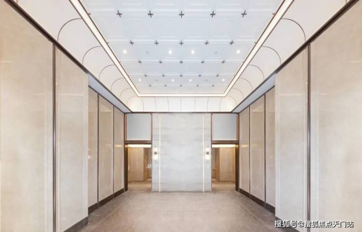 私宅标准延展到公区,大堂、电梯厅、电梯、入户厅四大区域一体化,解构主义遇见东方礼序,精工织就的穹顶叙事。